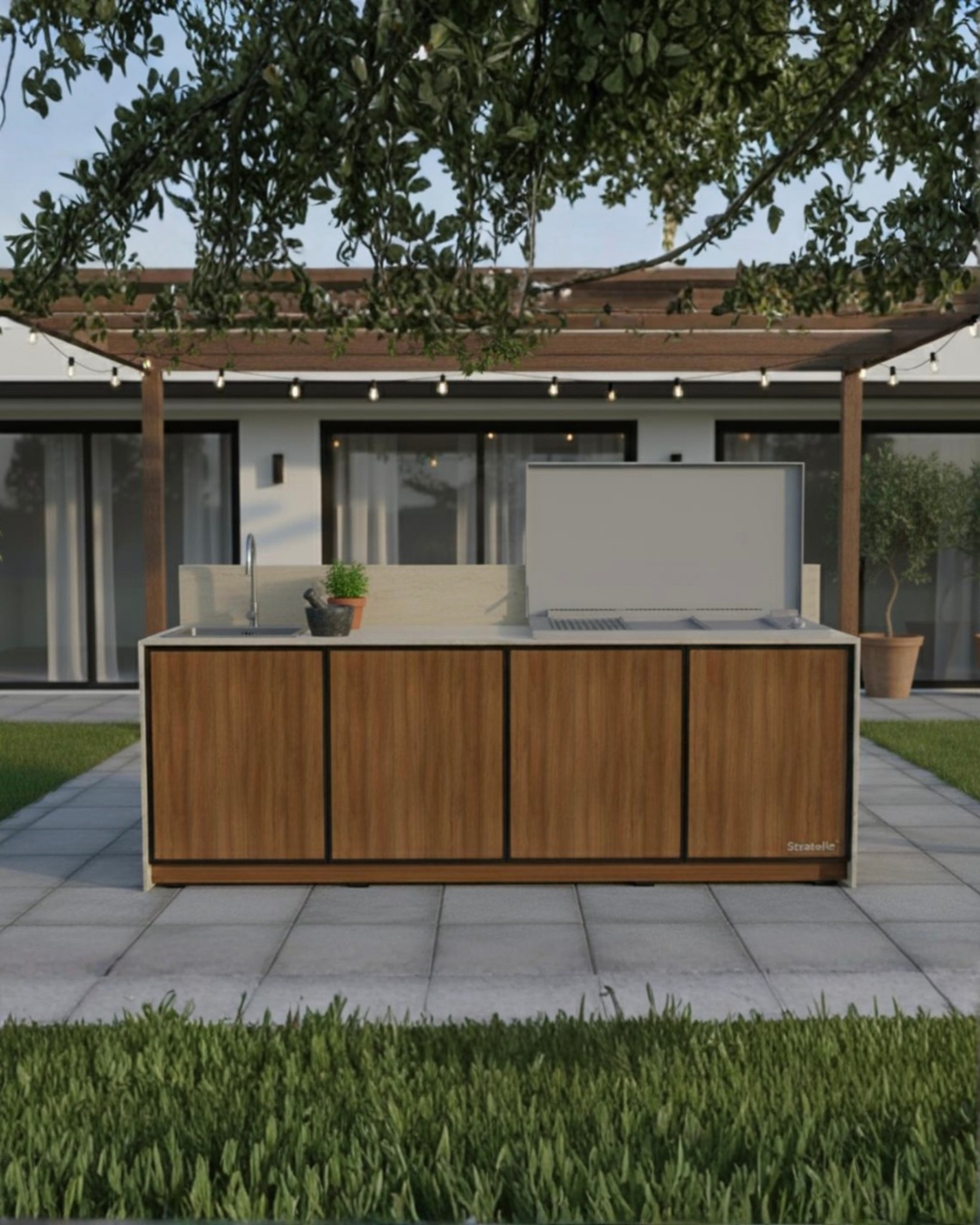 Avec Stratelle Extérieur, on imagine des cuisines d’extérieur, pergolas et terrasses qui subliment l’art de vivre en plein air, en alliant design, fonctionnalité et durabilité.